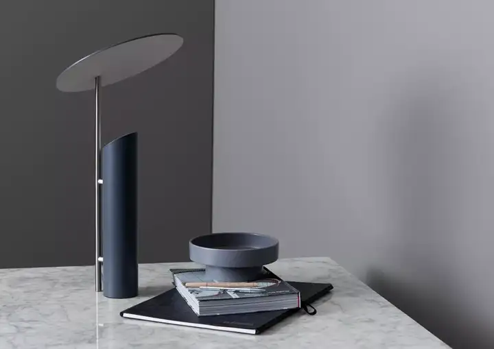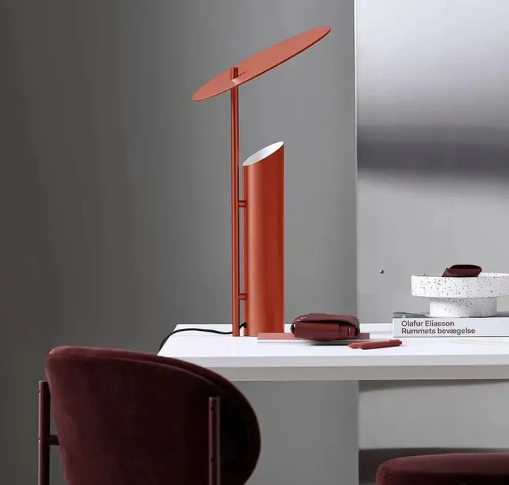 Reflect灯有一个圆柱形的底座以及一个顶部的圆盘,中间通过不锈钢杆连接。光线从管状基座向上投射,从上方的圆盘上漫射开来,十分柔和。红色的外形适合现代而前卫的装饰风格。
