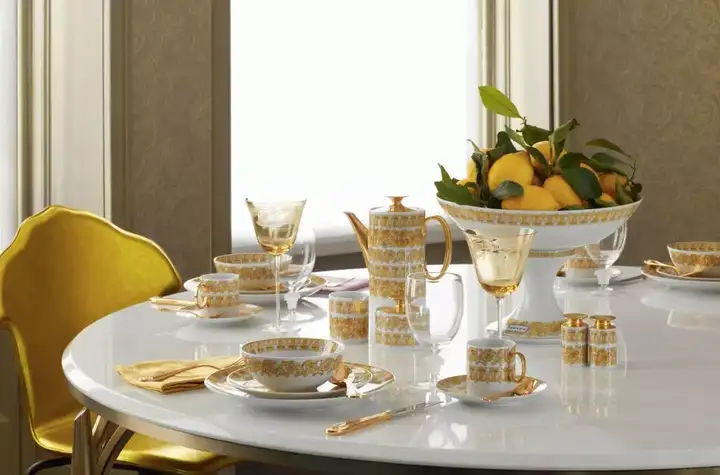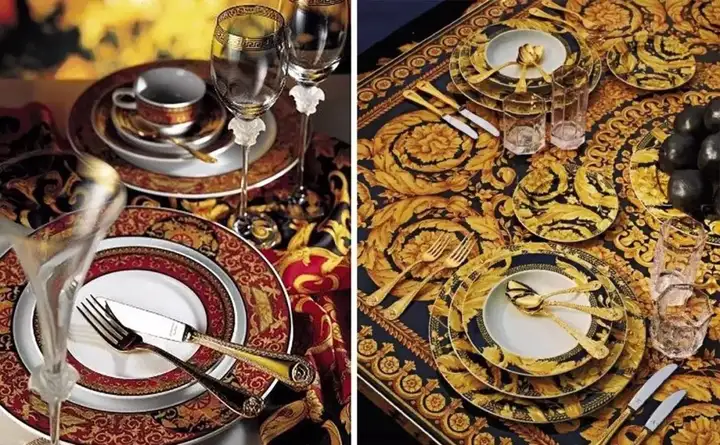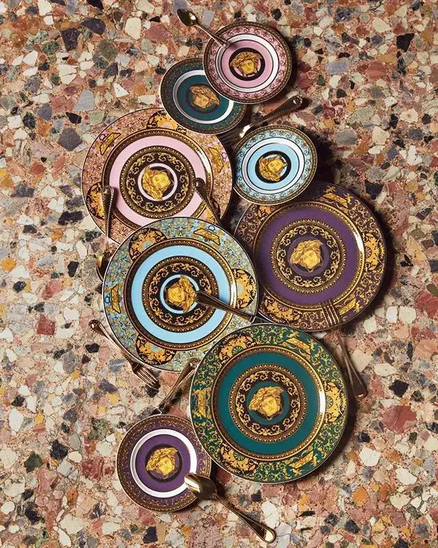 Versace与Rosenthal合作的陶瓷系列的每件产品图案都由具有丰厚经验的工匠手工制作、雕刻完成。花样饰物均为纯金手绘,赋予纹样精致鲜活的情趣,如同魔法般构造出每个角度细节都耐人寻味的极致美感,被藏家们成为“舍不得用的陶瓷”。