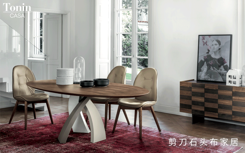 结合意大利传统工艺与创新设计,TONIN CASA将木材、不锈钢、陶瓷、玻璃等多种异材质结合,寻常的餐桌椅、茶几、柜类,经过设计师们充满想象力的演绎,呈现震撼的视觉感受。每件现代家具作品都融合了自己的创新风格和现代家具制作工艺技术,具有独特的视觉感染力,最终形成集实用性、功能性、艺术性、美观性,于一体的居家艺术家具用品。TONIN CASA非常重视表现与形式的一致性,既统一和谐,也不失各自特点,结合观赏性和功能性的创作概念,融合流行趋势与真正的意大利设计。