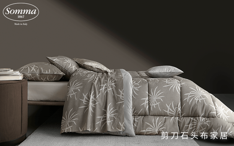有着简约时尚的设计的Somma以经营意大利风情为理念,致力于宣扬简约,优雅,舒适的意大利家居风尚哲学,巧夺天工的纺艺和花瓣式样,Somma堪称世界寝饰纺织之巅峰。