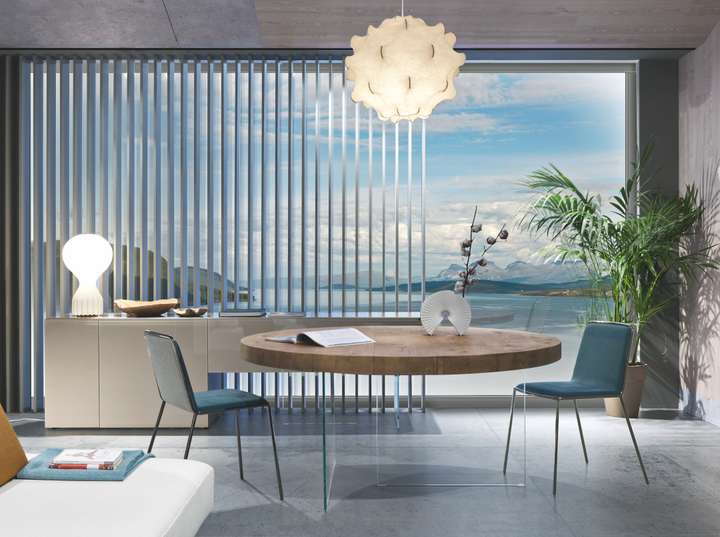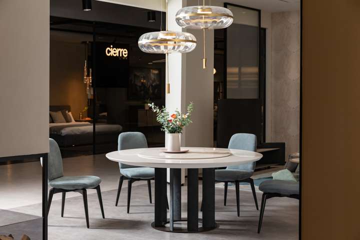 ELISEO系列餐桌用圆弧曲线带来更亲切、开放的接纳能力,让亲朋坐得更近。交叉的底座透露着解构主义的动感,用不规则弧线和立体形状带来力量感。