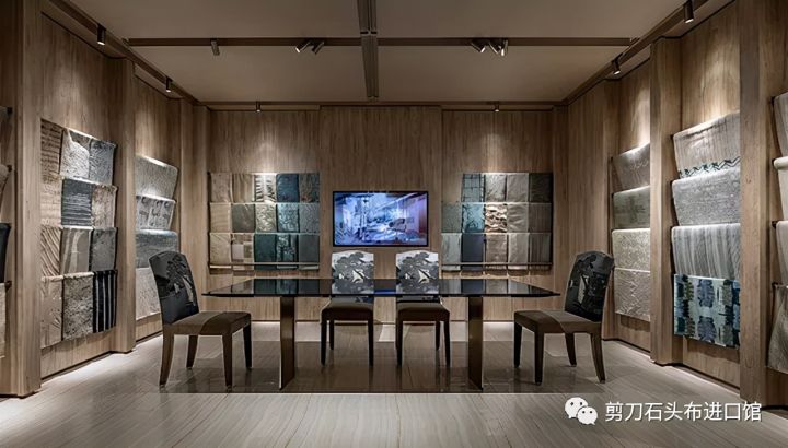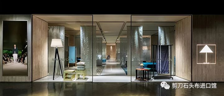 上海旗舰概念展厅中的面料展示区域,让人近距离感受Armani先生对于极致的追求。
