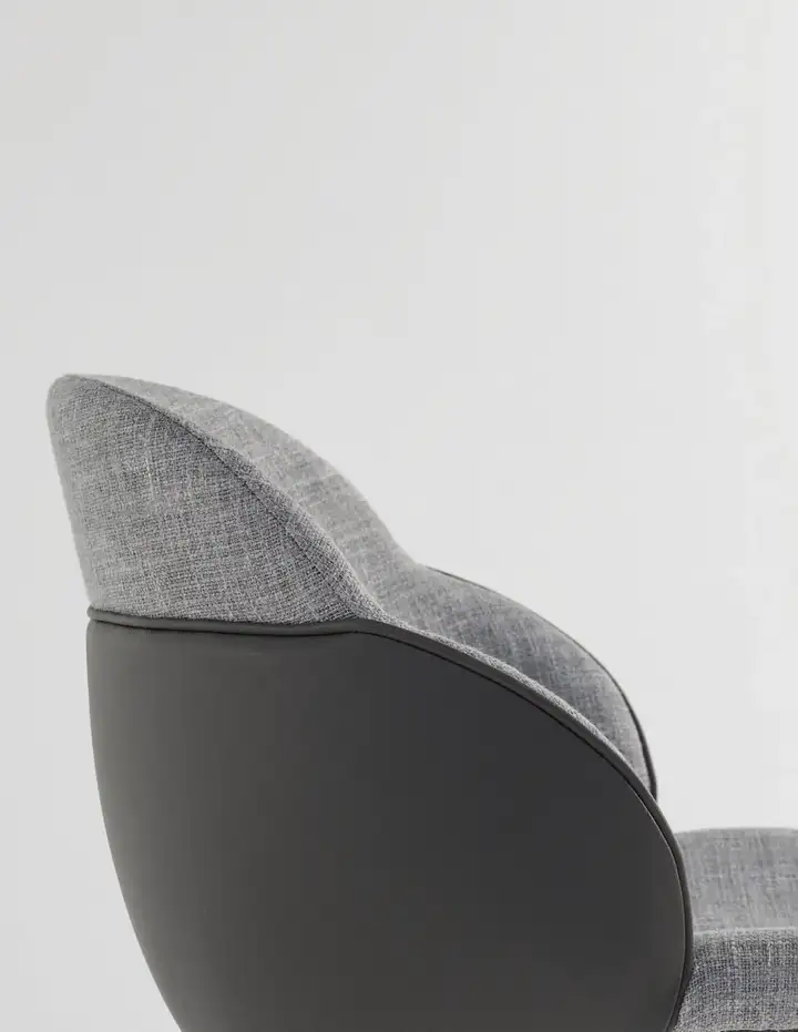 底座采用实木,通过独特的元素表现了 Joy 和 Miss Joy 椅子的耐用性,与座椅的柔和线条和以面料、人造皮革或皮革制成的环绕式稳固靠背造成了对比。