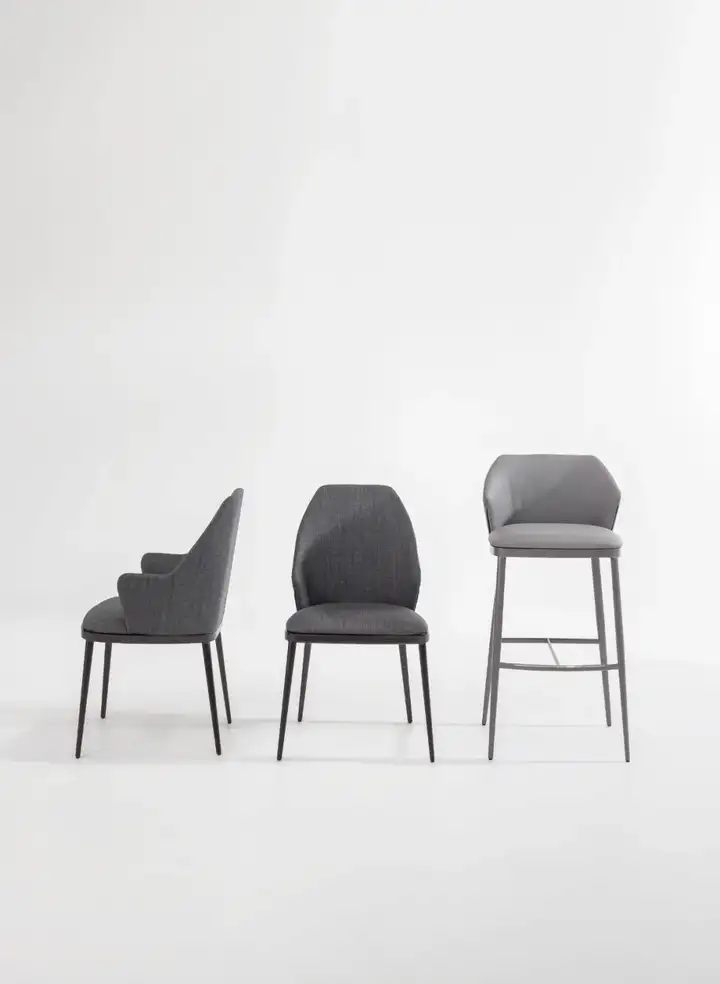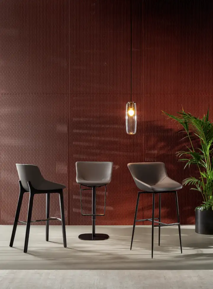 坐垫可以用面料、皮革和人造皮革覆盖,而底座有许多不同的金属饰面可选,广泛的选择为家具带来高度的个性化定制,同时提供木质底座(ArtikaWood)版本。