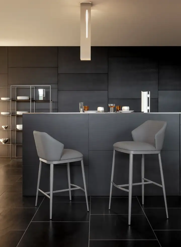 座椅和靠背的柔软衬垫,结合Bonaldo提供的精致装饰,使环绕桌子周围的 Mida 椅子或放置于吧台前的 Mida 凳子,都成为了起居区的理想家具元素。