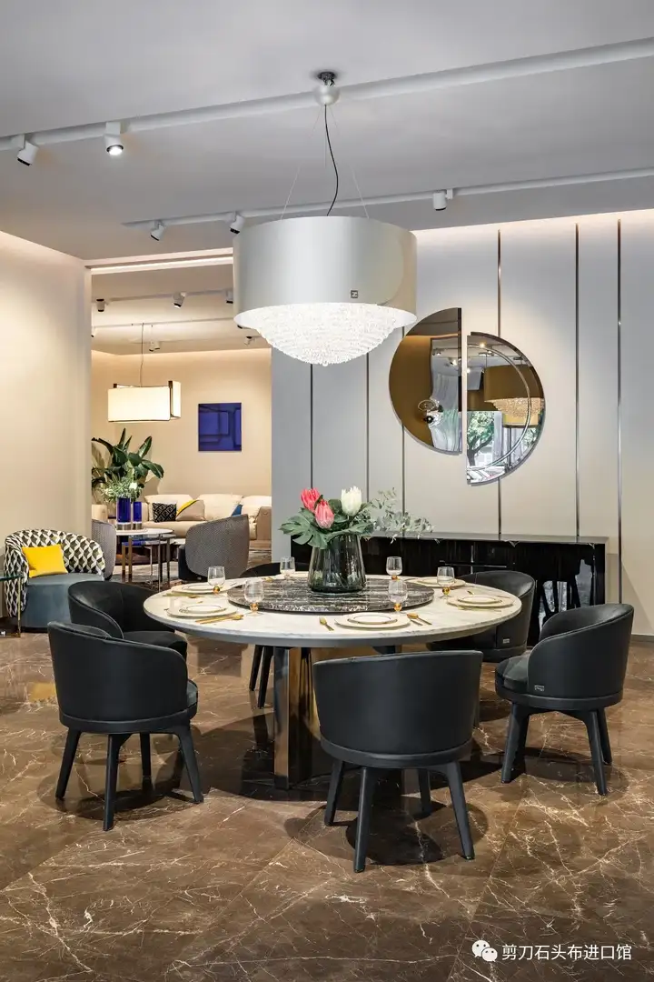 犹如明星般闪耀的意大利JUMBO COLLECTION水晶吊灯,八角芒星闪耀如银河,搭配圆餐桌无疑是餐厅的主角,为新年留下独特的回忆。