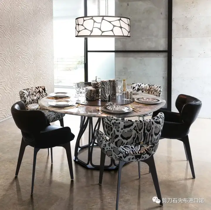 FENDI CASA和ROBERTO CAVALLI HOME的圆餐桌,比普通的餐桌更添加了一个旋转的圆形转盘,为春节聚餐增加了华美的仪式感。