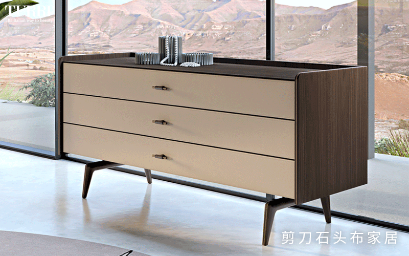 卧室以安静纯净为主要设计理念,秉承Turri灵活搭配的精神,Blues卧室系列家具,流畅的线条渗透家具廓形设计,为卧室注入时尚朝气,也将新时代生活对美好生活的向往反馈在居室风格中,利落与摩登并存。床、床头柜及斗柜等均以精美胡桃木打造,为居家生活赋予专属每个人的独特之美。