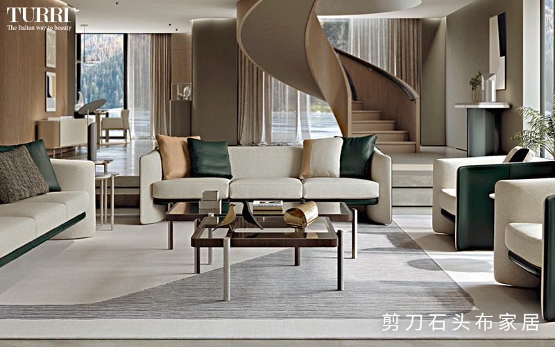 客厅空间的家具设计和搭配既要有美学的外形层面,带来美好的视觉享受,又要在感知层面赋予美学意境,意大利进口家具品牌Turri充满哲思与匠心,塑造出高级的审美品位。Blossom系列沙发是Turri在2021年全新推出家具系列,包括沙发和扶手椅,设计灵感来自大自然的艺术:优美花瓣在盛开剎那绽放的圆弧优雅形态,充满自然美感的设计使得沙发细腻又鲜明。Turri匠心制作的柔和抛物线曲面,在沙发上绵延接连,形成沙发边⻆的独特花瓣造型细节,同时以金属点缀更显精巧灵动。