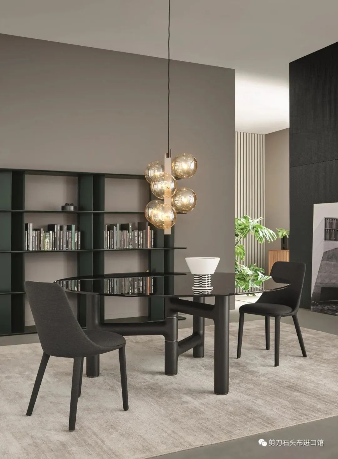 Big Table设计师Alain Gilles的又一经典之作。四根底座呈水滴形状,不同的角度呈现出不一样的形态,却带来建筑般的光影变幻效果,大气冷峻,张力十足。