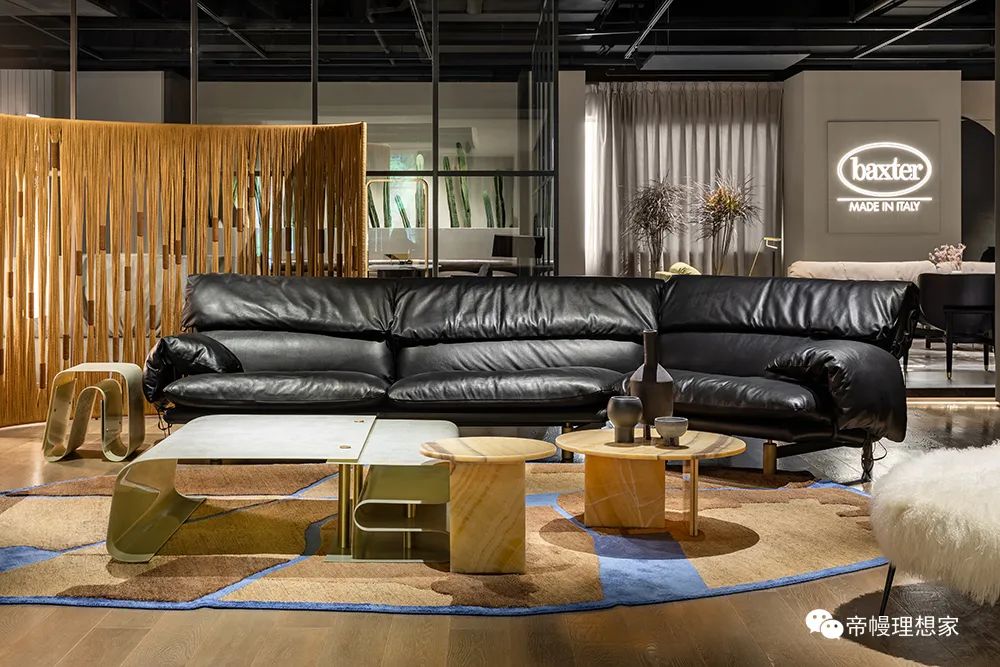 Baxter2023年新品沙发。黑色Polish光面皮光泽质感细腻,再搭配扇形弧度造型,有一种低调复古的舒适感。