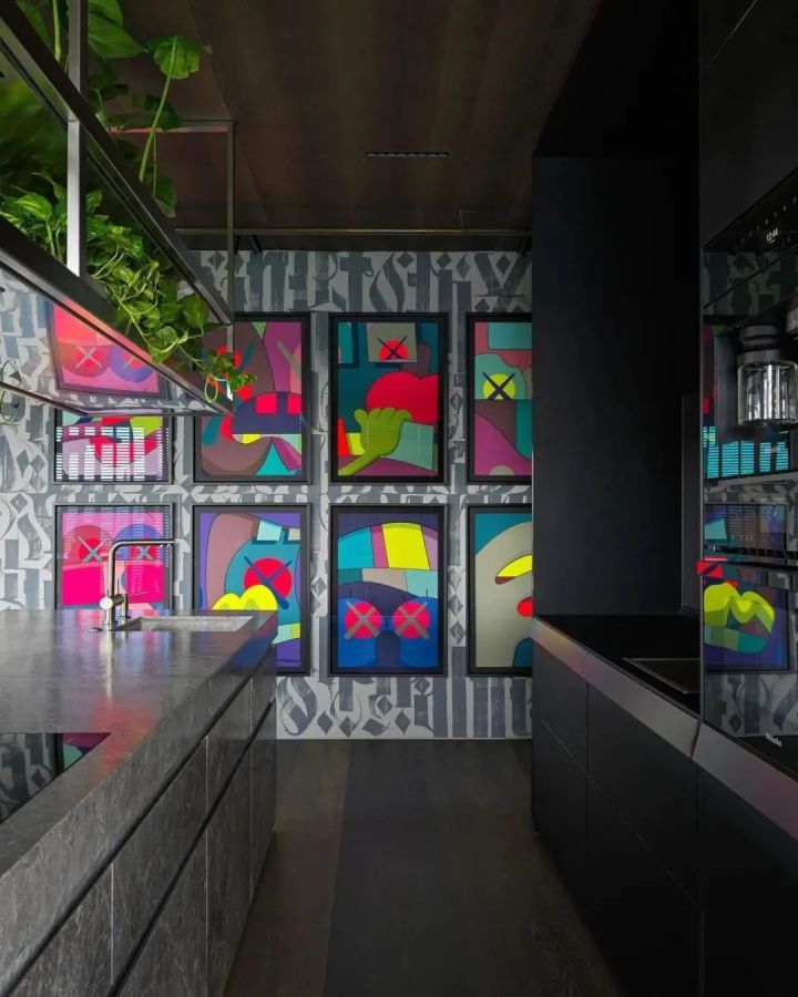 在中岛操作台,一边操作,还能抽空欣赏当代艺术家的组画,大胆奇幻,充满想象力。