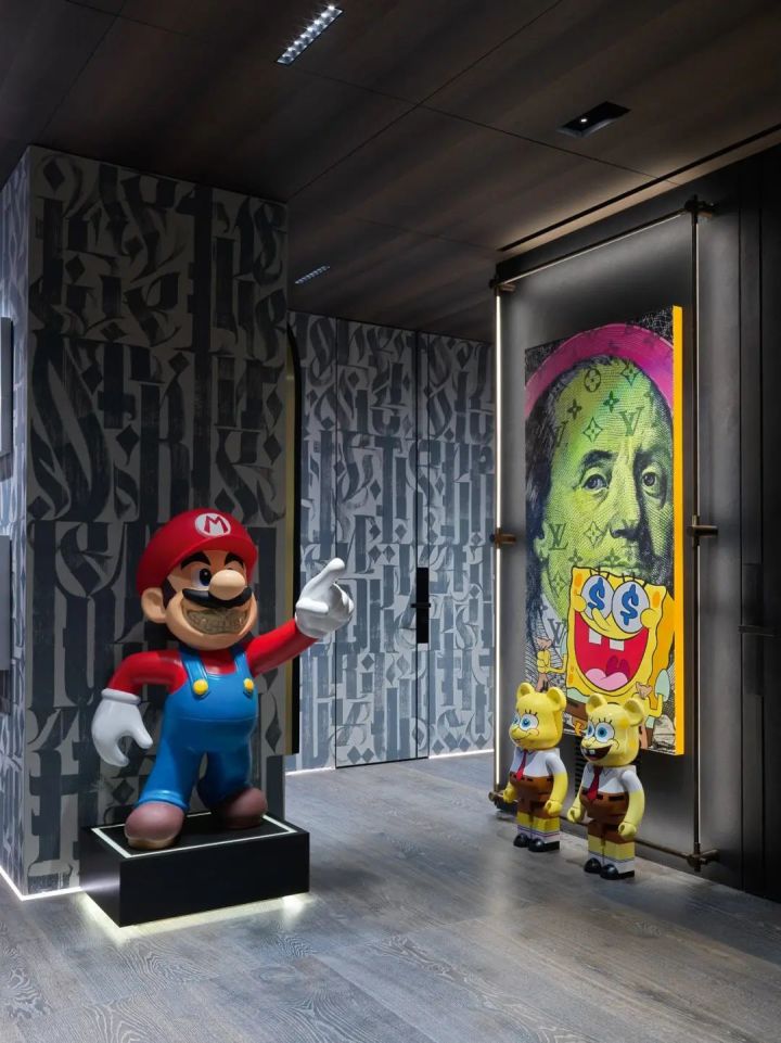 进入门厅,Ruslan Magomedov绘制的墙壁;Timmy Snix的画作,马里奥为你指路,你将一饱当代艺术的眼福。