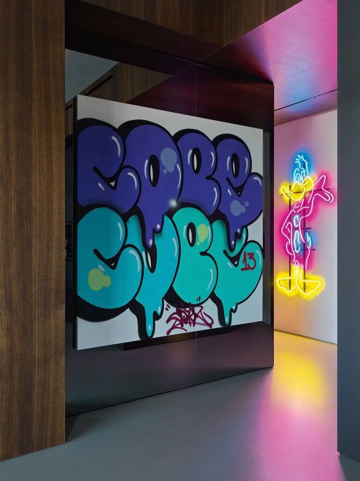 这是一名说唱歌手的私宅,一楼孩子们起居生活,二楼是屋主自己的艺术之家。在这里既有审美在线的家居环境,更能欣赏大量当代艺术名家作品,是一个Kaws和积木熊博物馆。