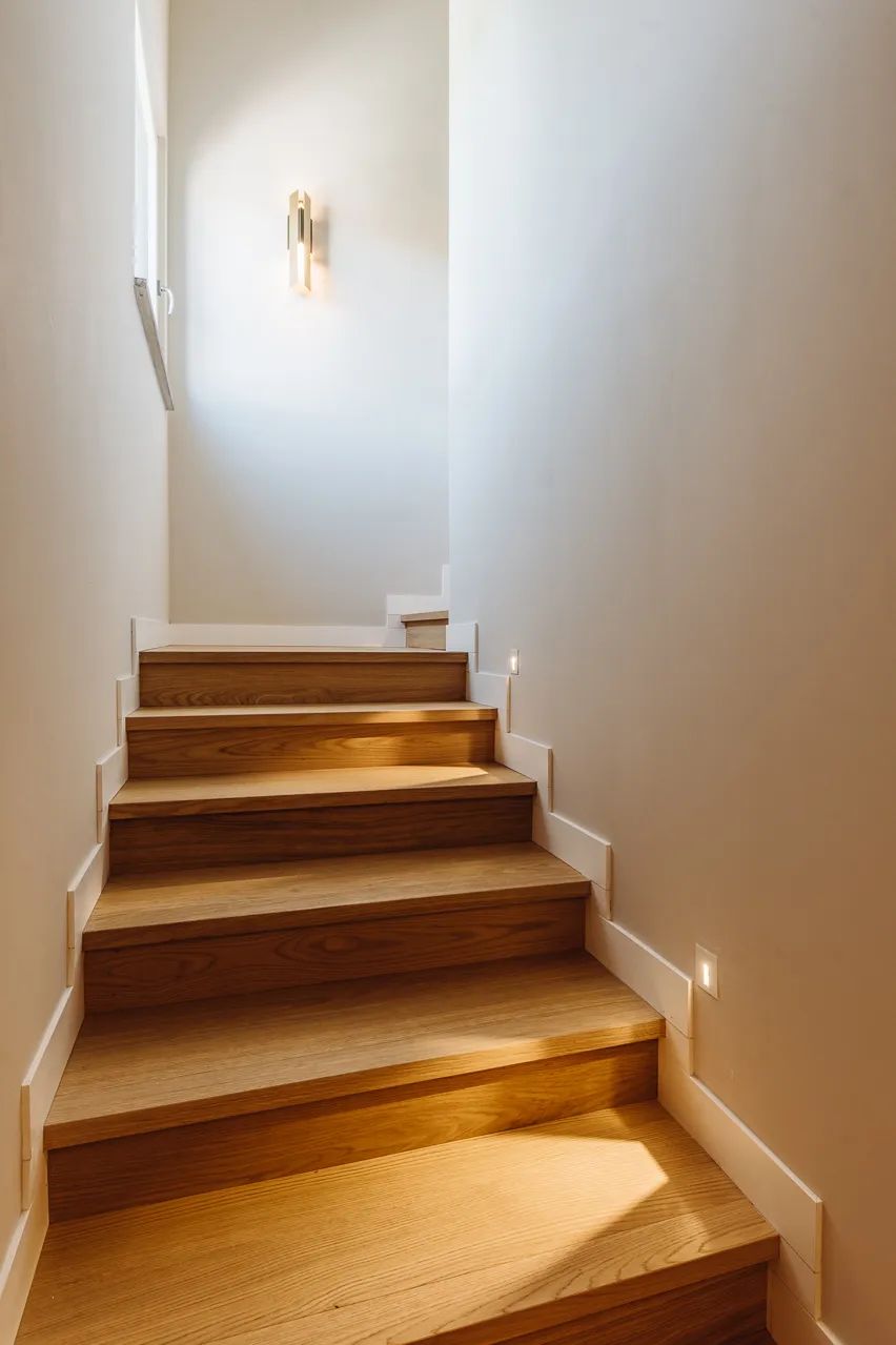 二层楼梯非常平缓,主人上下楼毫不吃力。大量的地灯装饰更带来一种阳光明媚的浪漫。